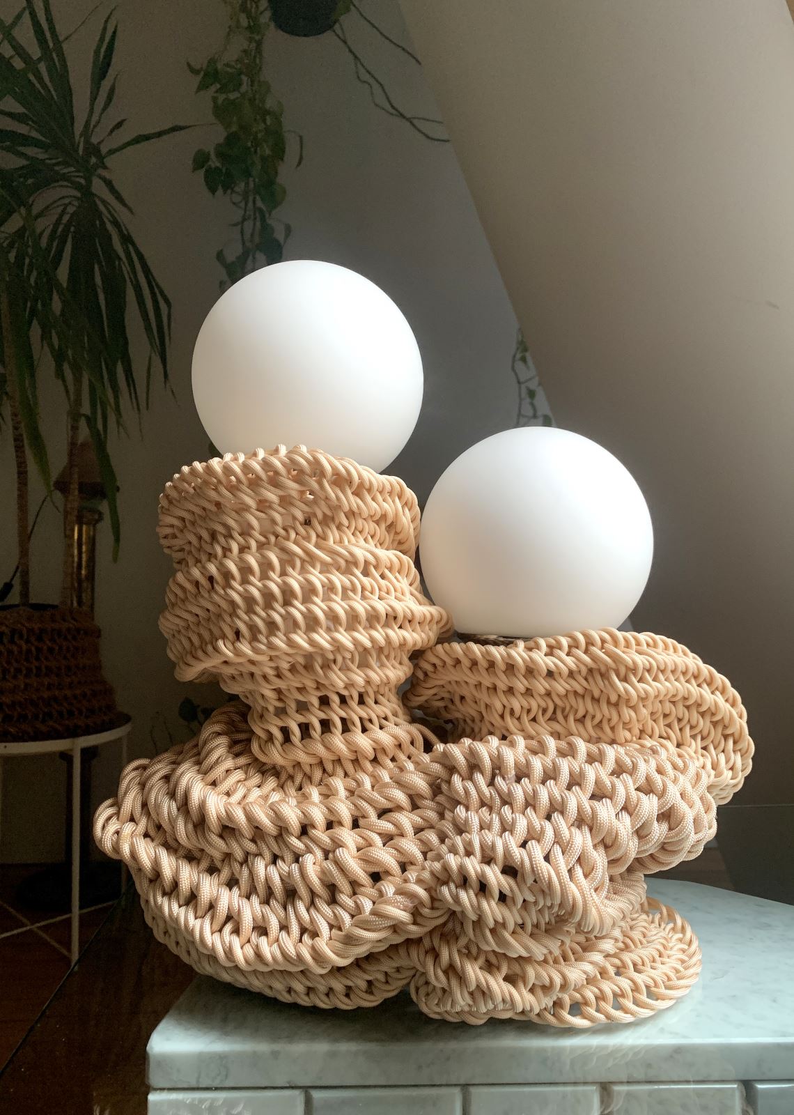 Depuis 2013, Amulette est le projet d’Annie Legault, qui développe un travail au croisement du design, de l’art visuel et de l’artisanat. Elle crée des sculptures lumineuses entièrement faites à la main, explorant les possibilités expressives de diverses fibres.