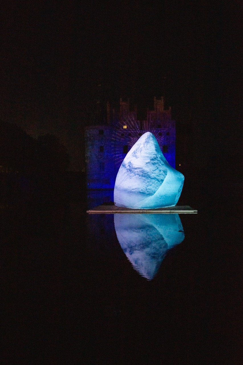ILULIAQ (iceberg), Jessie Kleemann, 2024. Caoutchouc, polyester, souffleur électrique, minuterie, câble électrique