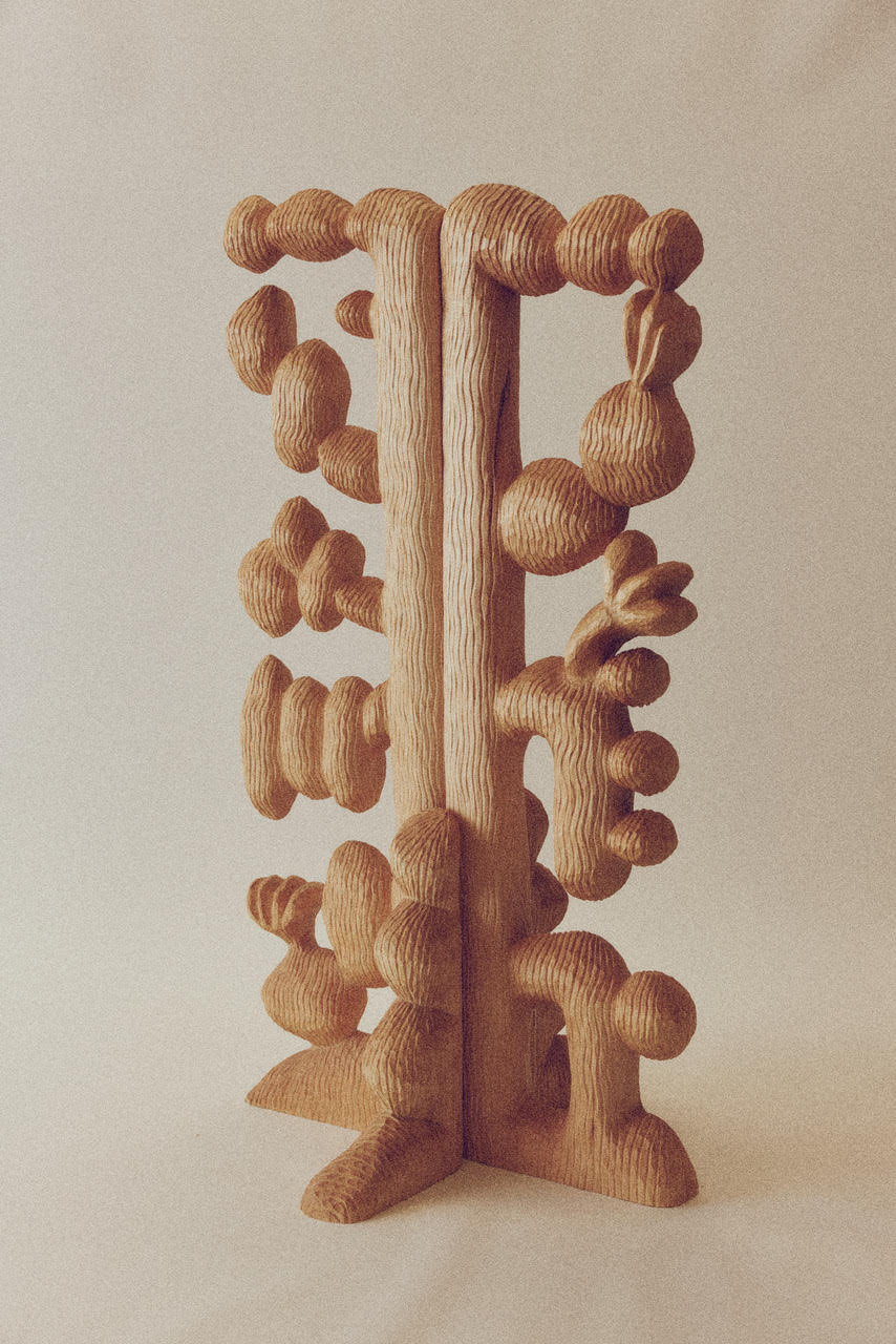 Sculpteur basé à Montréal, Karim Charlebois réagit à l’overdose visuelle du monde numérique. Trop d’images, trop de stimuli, trop vite, trop de tout. Il revient au geste, au bois, à la simplicité. Chaque entaille de ses sculptures est une trace d’erreur humaine, une célébration de l’imperfection.