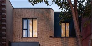 L’enveloppe extérieure se distingue par l’utilisation d’un unique matériau produit localement, le lambris de bois préfini blanc, choisi pour sa durabilité et sa capacité à refléter la lumière naturelle dans un site dénué d’ombrage naturel. Ce parement clair agit comme une surface neutre, mettant en valeur les percements de fenêtres à teinte de chêne, qui apportent une chaleur subtile à la composition.