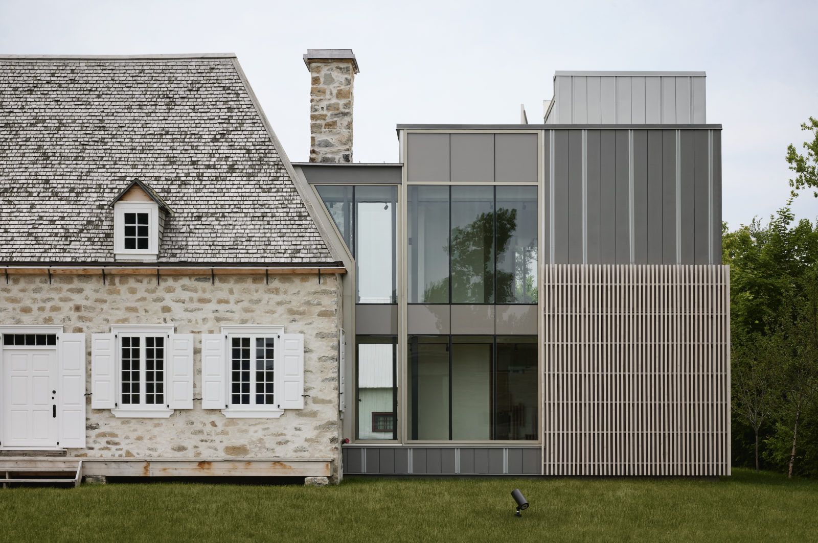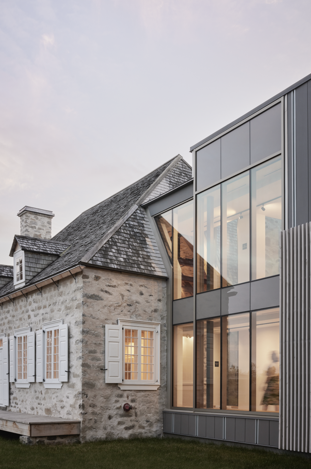 Ce volume, relié à l’existant par des passerelles vitrées, enrichit l’espace muséal et offre des perspectives inédites sur les éléments caractéristiques de la maison restaurée. Les matériaux, tels que le cèdre blanc et le zinc, créent à la fois un contraste et un dialogue entre l’ancien et le contemporain.