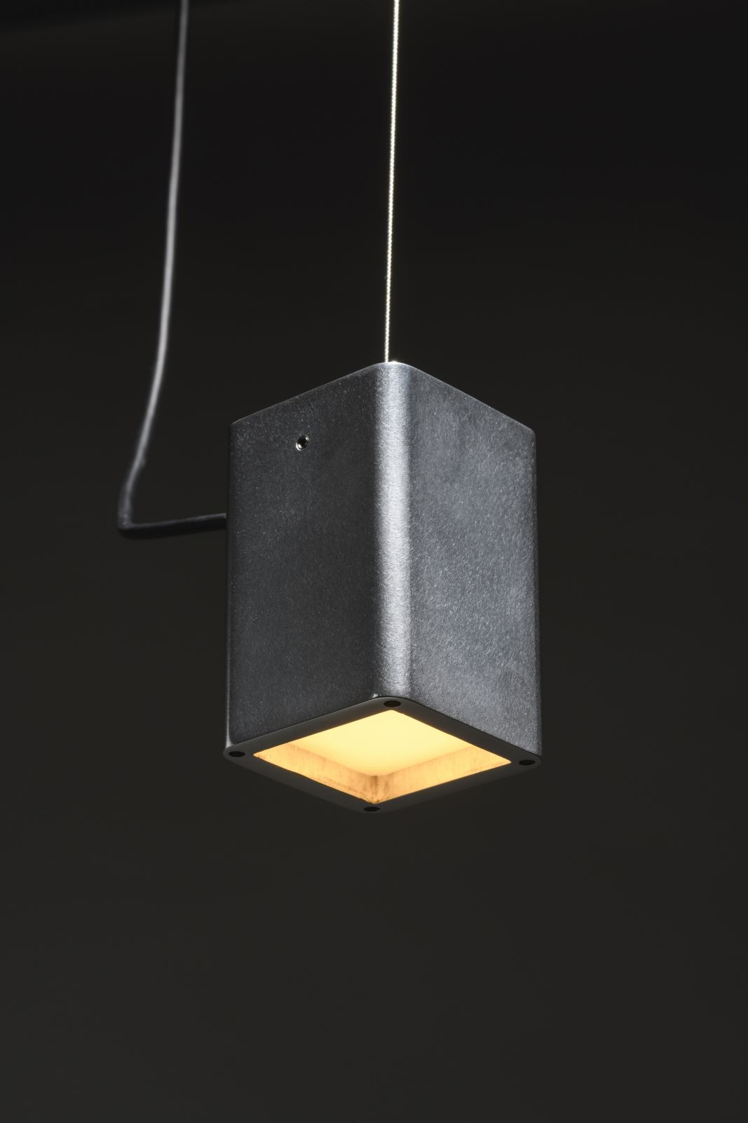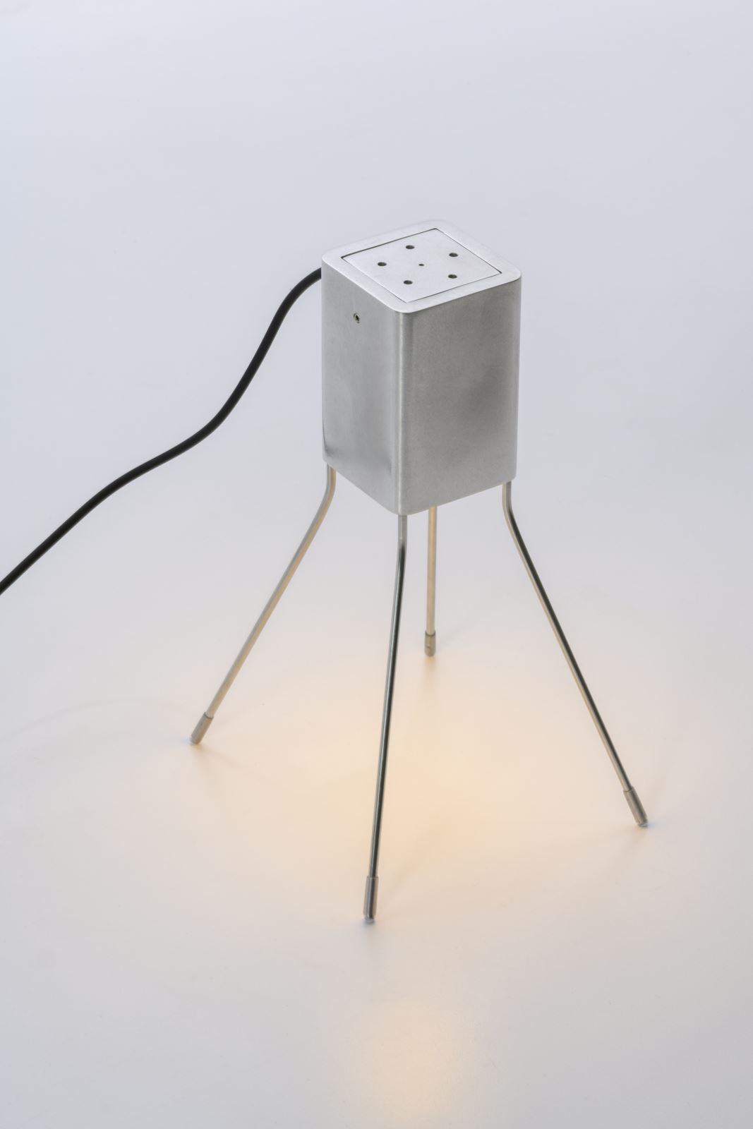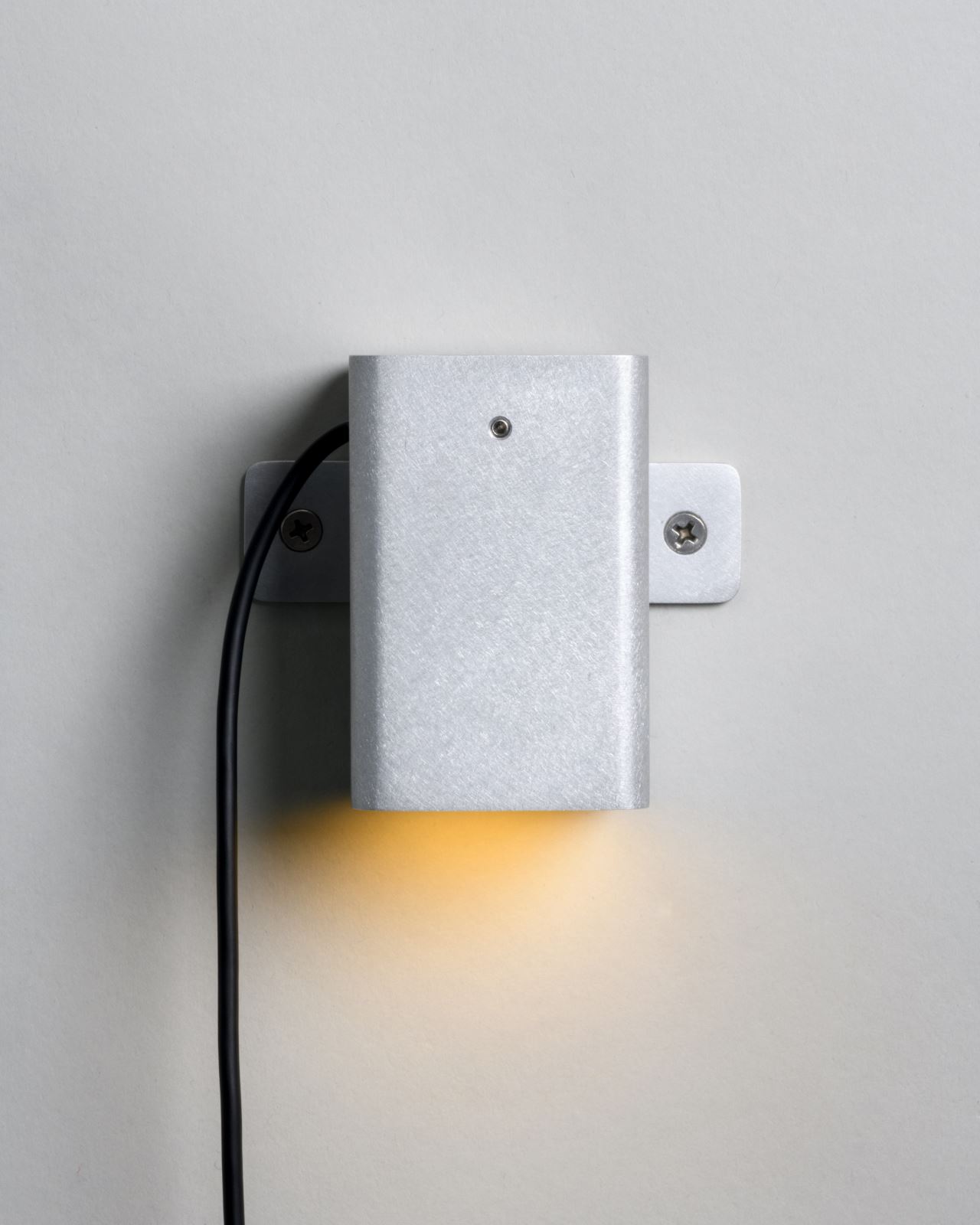 SAT-LO1 (SAT) est une lampe à DEL compacte, pensée pour être discrète et polyvalente. Elle repose sur quatre pieds comme lampe de table, peut être fixée au mur comme applique ou être suspendue.
