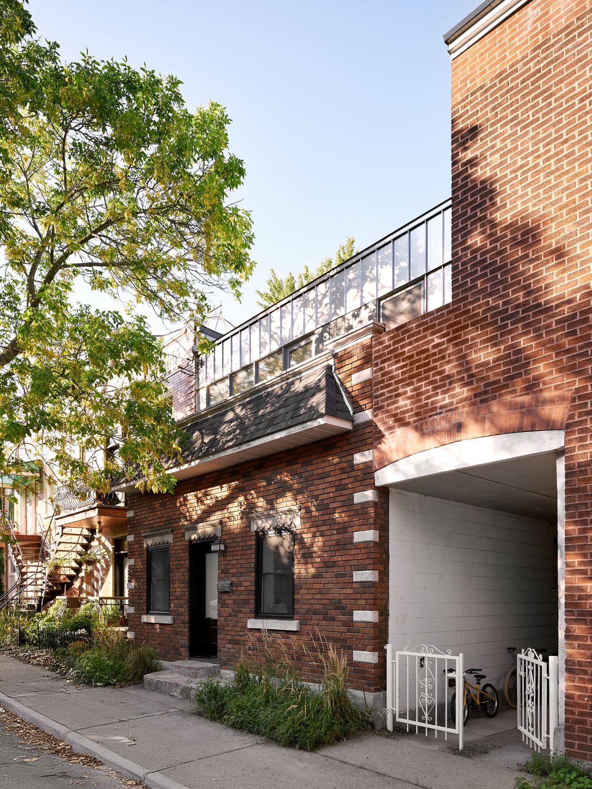 Cette discrétion formelle renforce la présence intemporelle du shoebox existant, qui conserve son rôle de socle et de repère dans la rue. Ce choix témoigne d’un respect profond pour le patrimoine urbain montréalais, tout en proposant une lecture renouvelée de l’agrandissement résidentiel.