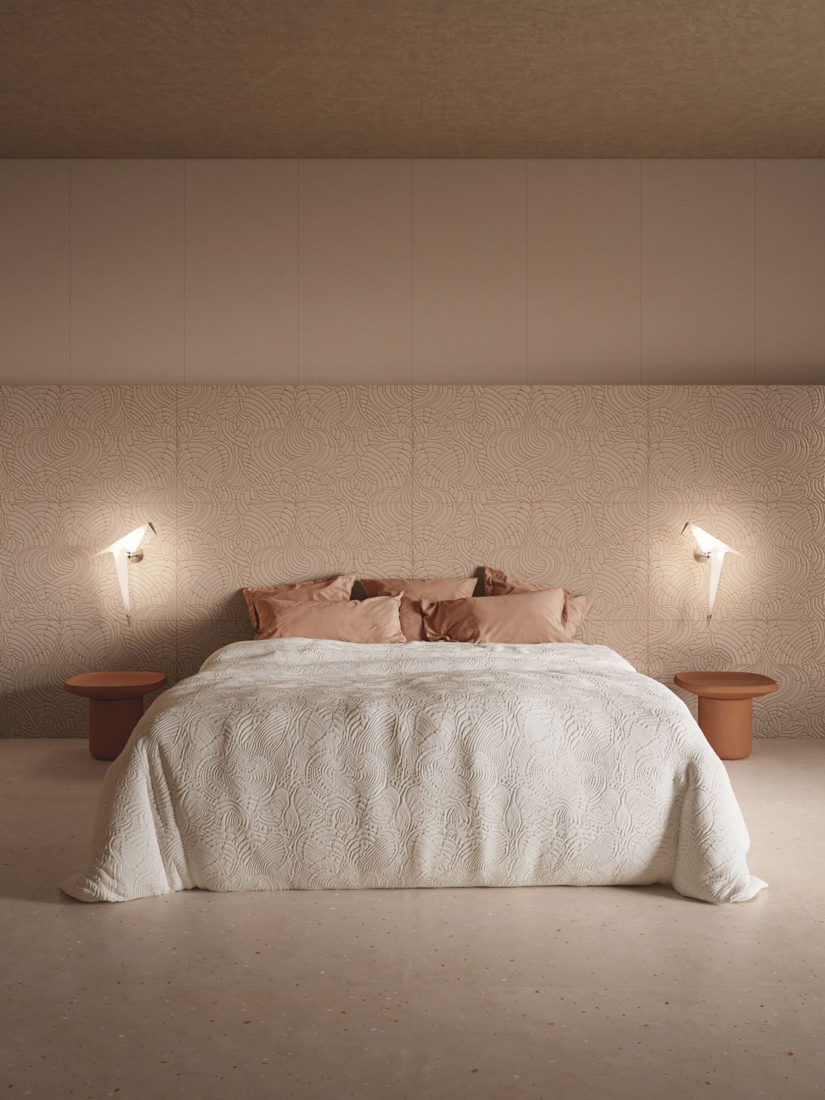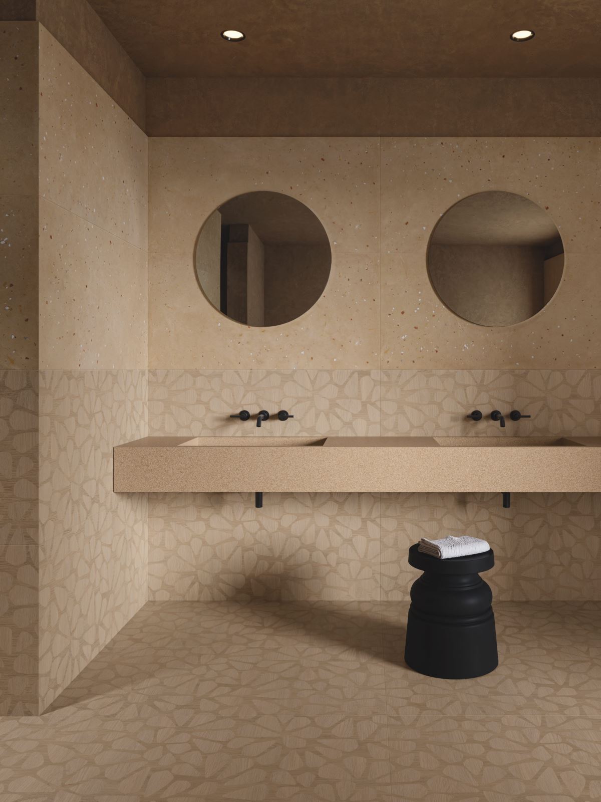 Par des effets graphiques audacieux, les surfaces céramique interagissent avec la lumière, l’espace et le toucher. Les textures tridimensionnelles — reliefs, incisions, microstructures — ajoutent profondeur et dimension tactile.
