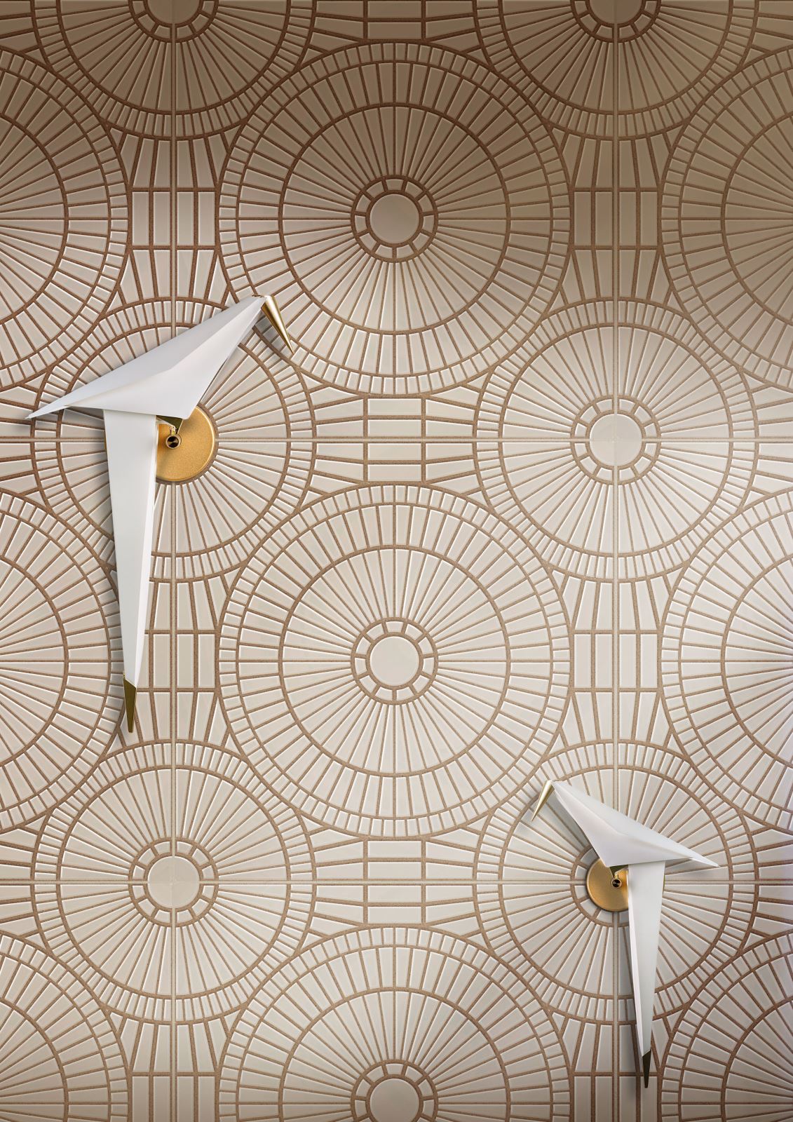La lumière joue un rôle central dans ces compositions : reflets directs, jeux d’ombre et de volume, motifs ton sur ton, rayures, veinages, effets craquelés ou finitions métalliques s’unissent pour créer des ambiances vivantes et changeantes.