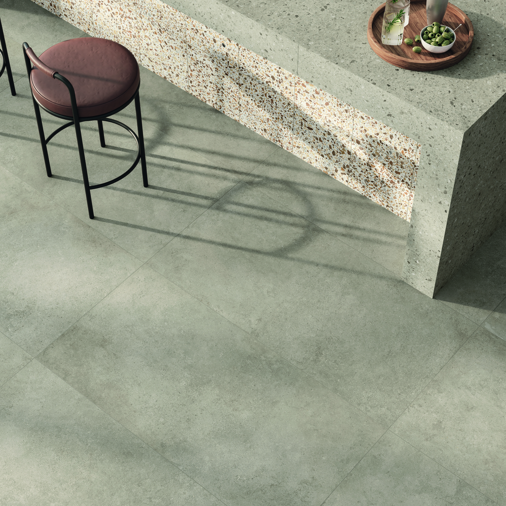 Les carreaux effet pierre, quant à eux, s’expriment dans une palette étendue allant des tons minéraux neutres aux nuances plus riches — vert, bleu, terre cuite ou anthracite. Les marbres céramiques, en finition brillante ou mate, affichent des veinages spectaculaires adaptés aux sols comme aux murs.
