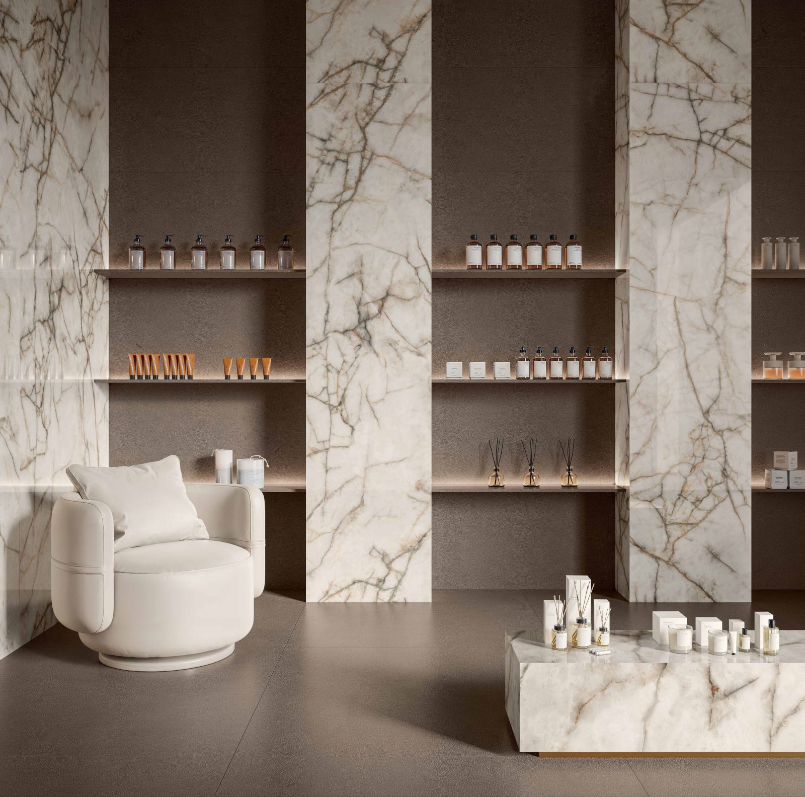 Cette édition du salon a mis en lumière des tendances majeures tant sur le plan du design que de la production : retour affirmé des tons bruns riches, méthodes de fabrication de pointe, démarches plus durables et nouvelles applications de matériaux. On remarque également des finitions réfléchissantes, des surfaces scintillantes, des effets rétroéclairés et des carreaux à textures profondes et expressives.